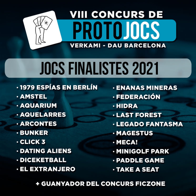 🥁... I sense més preàmbuls passem a anunciar aquí els noms dels 20 prototips de jocs de taula finalistes: