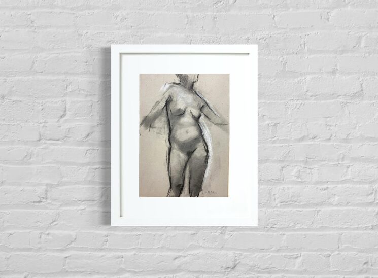 -Dibujos originales, enmarcados, hechos al carboncillo en papel de estraza sobre el tema del desnudo.