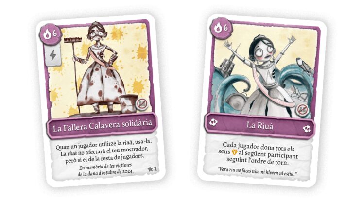 Si vols jugar amb la carta, cal tindre La Fallera Calavera Deluxe. Ara bé, tot el que es recapte tindrà finalitats solidàries. Més enllà de si pots jugar-la o no, volem que siga un objecte de col·leccionisme amb valor solidari, creat per ajudar els damnificats per la dana.