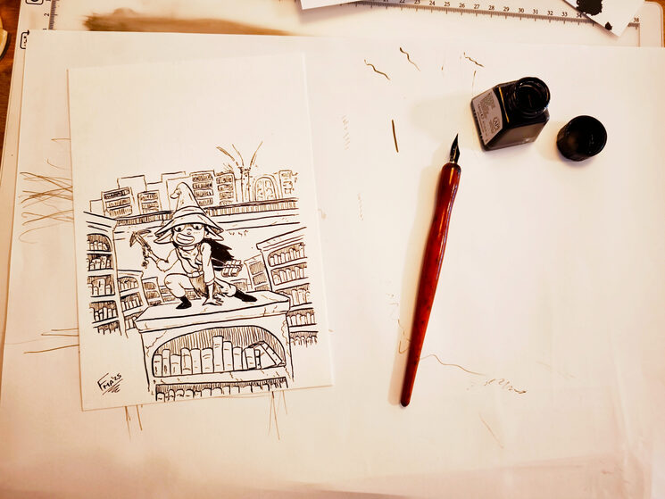 Otra de las recompensas es una ILUSTRACIÓN PERSONALIZADA. Dibujada completamente a mano, os enviaré el original junto con el zine. ¿Queréis tener una ilustración de vuestro PJ del juego de rol ese del que usted me habla? Hecho. ¿Tenéis un OC de esos que dicen los jóvenes y os gustaría verlo con mi estilo? Vamos allá. ¿Queréis convertiros en un personaje de cómic sin filtros de IA asquerosos ni tonterías de esas? Me pongo manos a la obra. Lo que queráis, en serio.