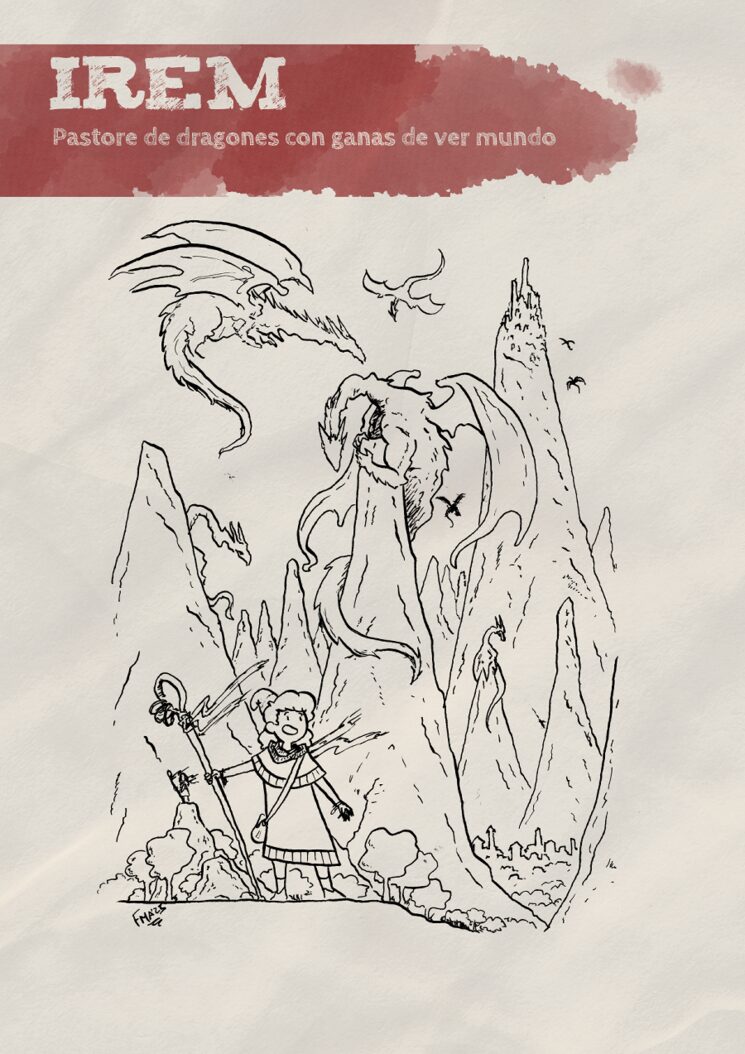 Además, estoy preparando un MINIZINE extra de ocho paginitas titulado Pastores de dragones que hablará sobre la cultura del pueblo de Irem, uno de los personajes.