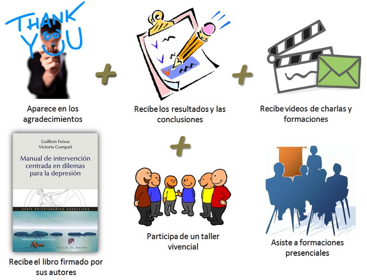 Ya en proyectos anteriores, nuestro grupo ha puesto a prueba la "Intervención Centrada en Dilemas" para la depresión, mostrándose como un módulo de intervención efectivo contra esta problemática. En la actualidad necesitamos estudiar cuáles son los mecanismos de acción de esta intervención, con el fin de mejorar su eficacia y efectividad.