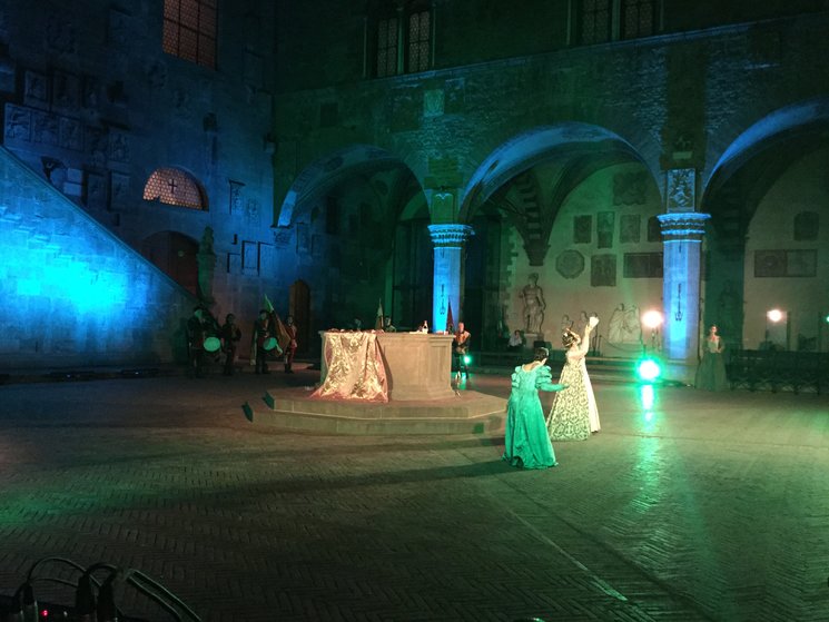 "I Medici" espectáculo de danza antigua. Estreno 16 de junio en el Palazzo Medici Riccardi en Florencia. Coreografiado por Marco Bendoni y Bruna Gondoni, con música de Francesco Corteccia, interpretado por Sbandieratori e Musici della Signoria, compañia de danza antigua Corteo y una conocida actriz.