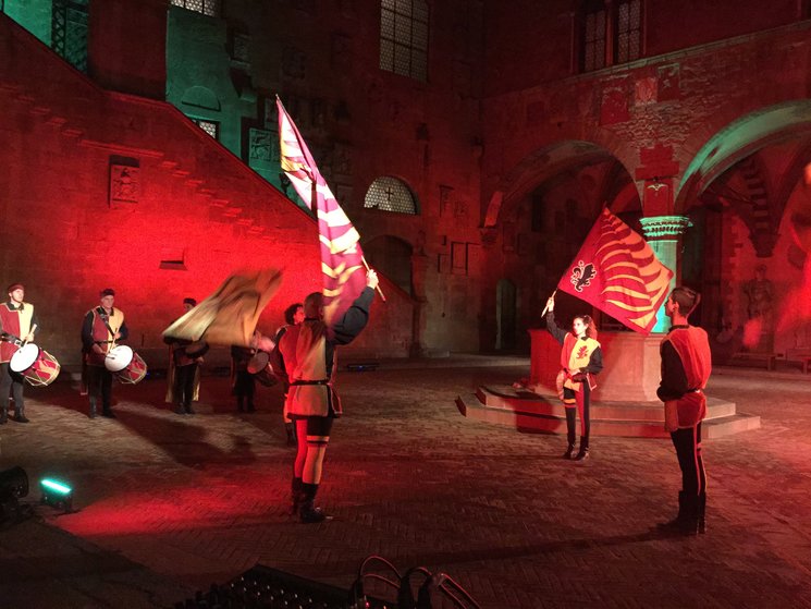 Contaremos también con la interpretación de los Sbandieratori e Musici della Signoria di Florencia, la compañía de danza antigua Corteo y una actriz de reconocido prestigio.