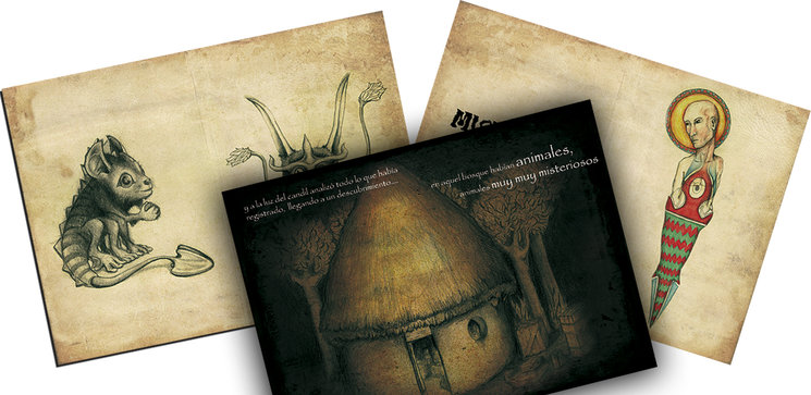 Libro ilustrado para todas las edades, que evoca a los manuscritos medievales. La insólita aparición de bestias extrañas en el bosque hará que el pueblo entero se afane por aclarar este extraordinario caso. Te envolverás en un mundo mágico donde el misterio se apoderará de tus ojos.