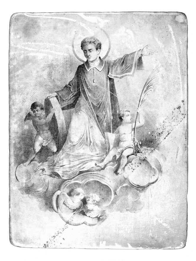 Gravat en planxa fotolitogràfica d'una litografiade "St. Vicenç" a llapis gras original.