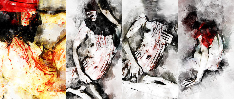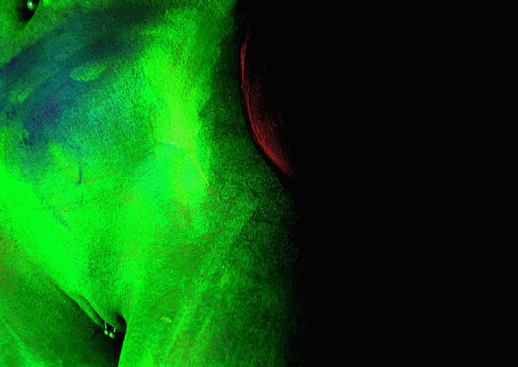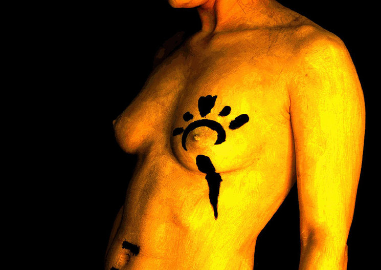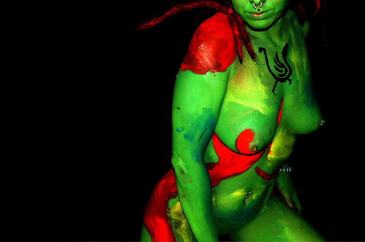 Los cuerpos desnudos de las modelos, con sus marcas tribales, y de alto contenido erótico hacen de cada pieza una sensación única al contemplarla.