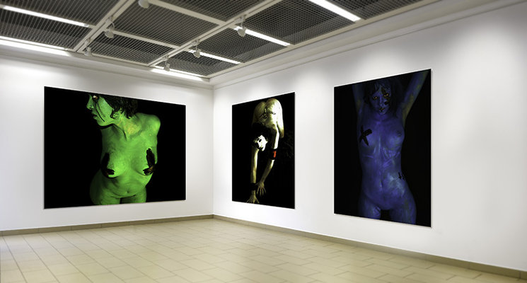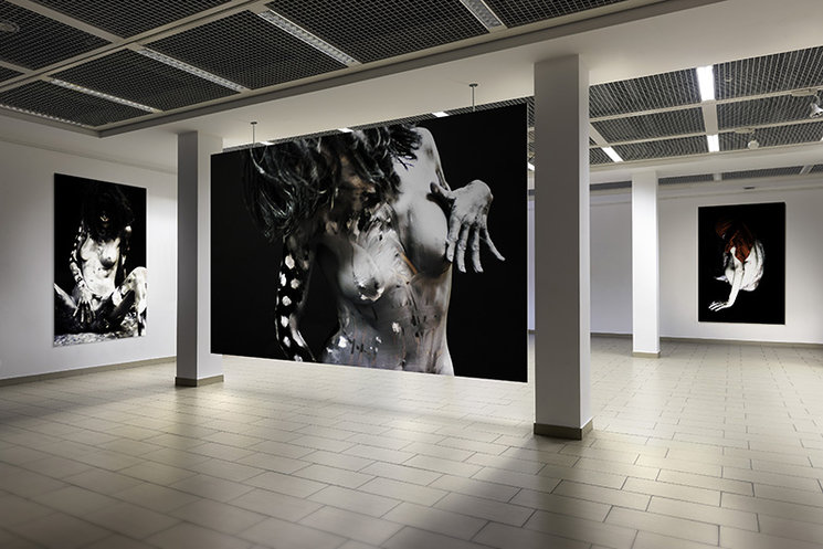 La obra expuesta costa de estas fotografías de alta calidad en grandes dimensiones ( 140cm x 100cm y 240cm x 200cm), donde se aprecian todos los detalles de los personajes creados y fotografiados. La textura de sus pieles, las poses de sus cuerpos, los colores tribales, el más mínimo detalle cobra aún más fuerza al verlos en este tipo de exposición de grandes dimensiones y máxima calidad, es impresionante ver la gama de colores y los efectos de las luces en la exposición.