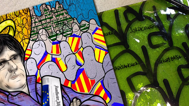 Vitrales políticos para denunciar la situación en Cataluña después del 1 de Octubre
