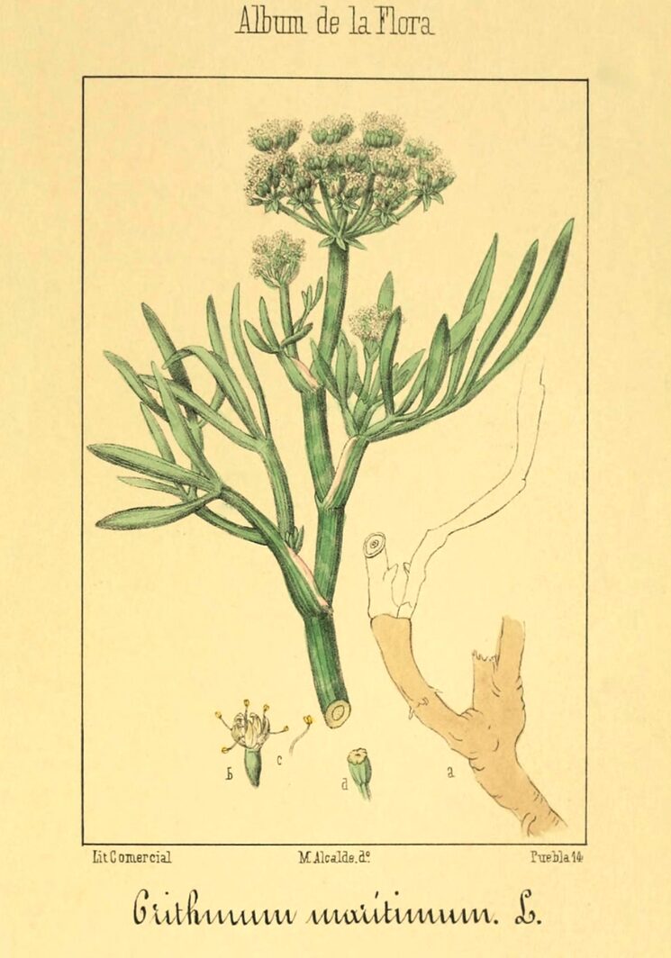 El hinojo marino, crithmum maritimum, por ser una planta que crece de forma silvestre en nuestras costas y acantilados, desafiando a la salinidad, las sequias y los parásitos. Crece y se desarrolla en los arduos terrenos que otras especies rechazan. Fue medicina a bordo de los barcos españoles en sus singladuras de ultramar, manjar de las mesas británicas hasta su casi extinción, aliño apreciado de la cocina mediterránea, planta de interés y estudio de los naturalistas ingleses durante siglos. Hoy ha sido recuperada para su estudio y cultivo por Navigatio que luce orgullosa su flor dorada en los escudos y proas de sus barcos