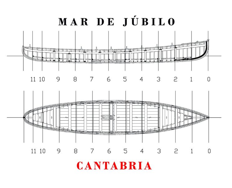 ● La segunda recompensa es nuestra camiseta con la serigrafía a dos colores del plano de formas de una trainera antigua con la leyenda MAR DE JÚBILO. CANTABRIA.