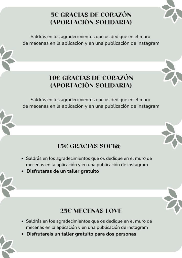 Como mecenas estas son las recompensas que podrás encontrar: