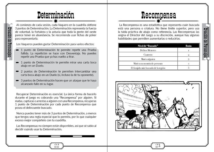 Tiny Gunslingers incluye toda la información para crear tu Vaquero y reglas opcionales para añadir diferentes profesiones que te permitirán disfrutar de un montón de opciones, Rasgos y, en resumen, de personajes de lo más variopinto.