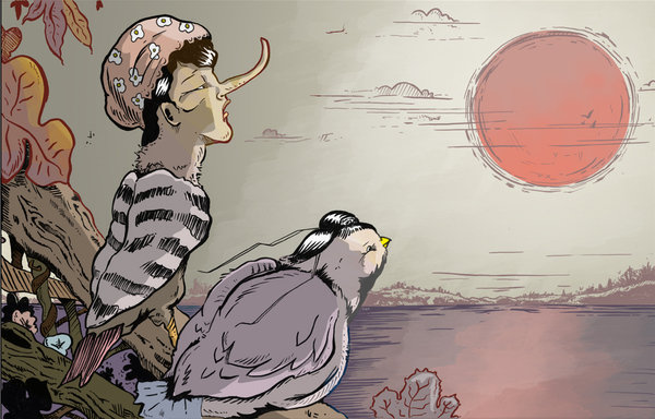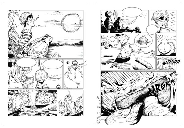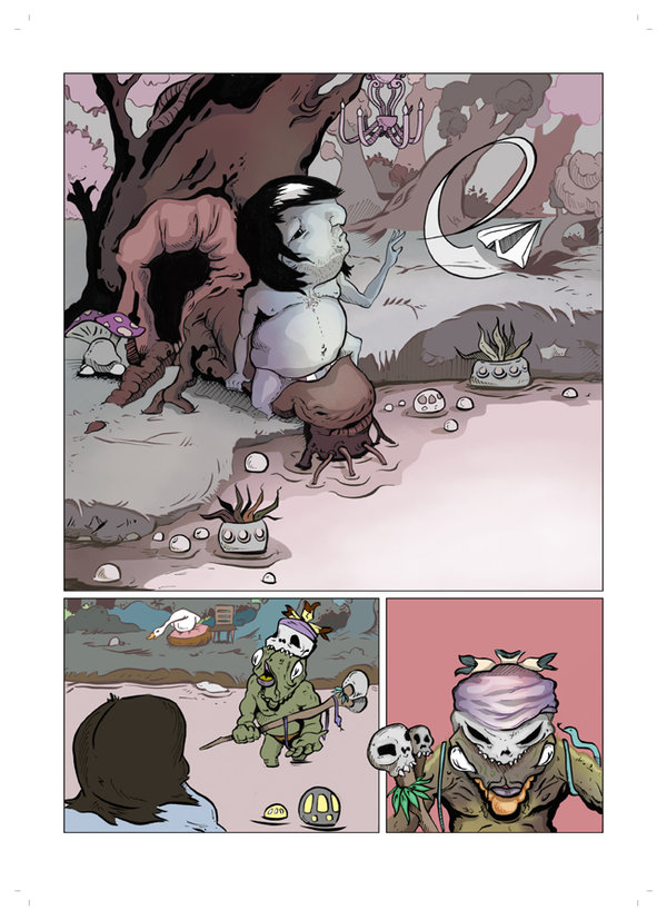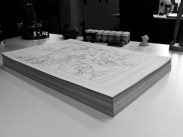 La idea de escribir esta novela gráfica surgió hace 3 años. Es curioso comprobar, como un pensamiento que tuve mientras corría por un parque, pudo tomar forma hasta convertirse en proyecto real, pero así es. Montañas de bocetos, miles de ideas que van y vienen, algunas para quedarse y otras para perderse. Cientos de horas de ensoñación con mundos oníricos y horas y más horas para crear personajes que consigan respirar. A día de hoy he terminado de dibujar las 115 páginas de la novela y me siento muy satisfecho con el trabajo, aunque todavía queda un largo camino por recorrer; hay que pasar todas las páginas a tinta china, escanearlas, maquetarlas, darle color, introducir bocadillos y textos,... Si traducimos esto a tiempo estaríamos hablando de un año aproximadamente. Tengo previsto terminar el proyecto para otoño de 2013.