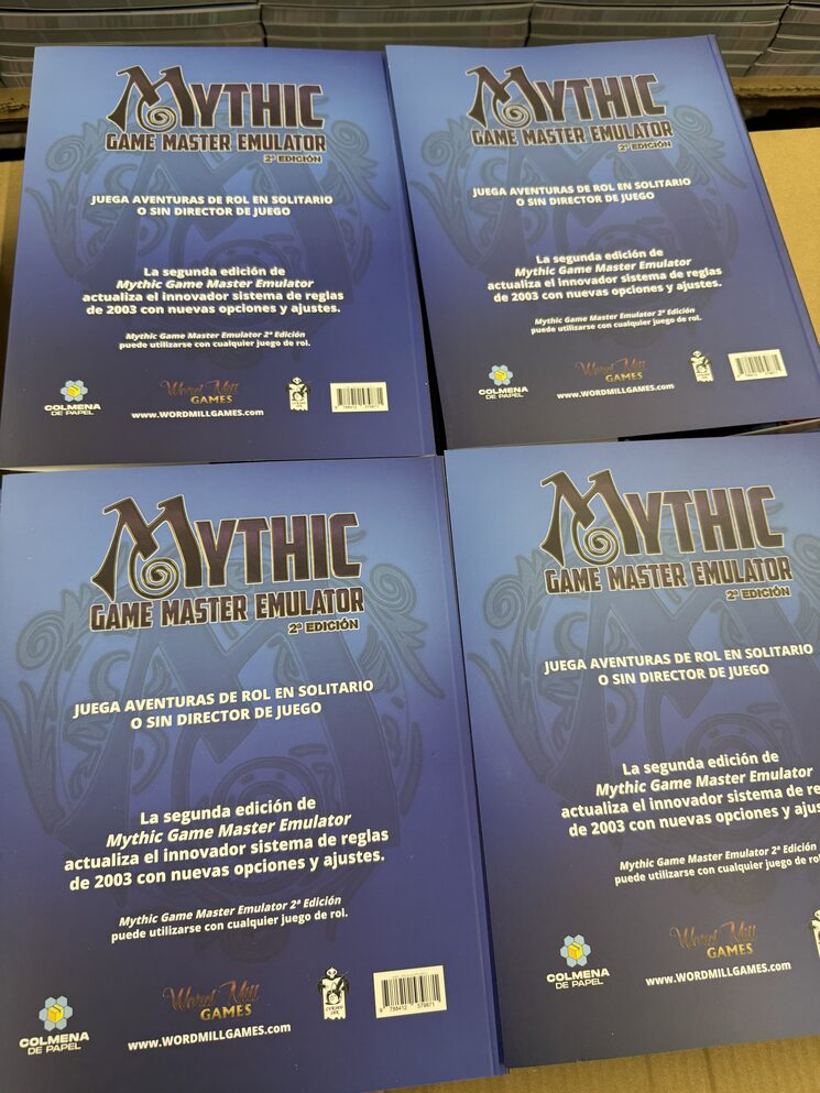 Actualización breve: la tirada de *Mythic * ha salido de imprenta y ya viene de camino. Si la logística acompaña, estimamos llegada a almacén en unas dos semanas. Adjuntamos fotos del resultado final.