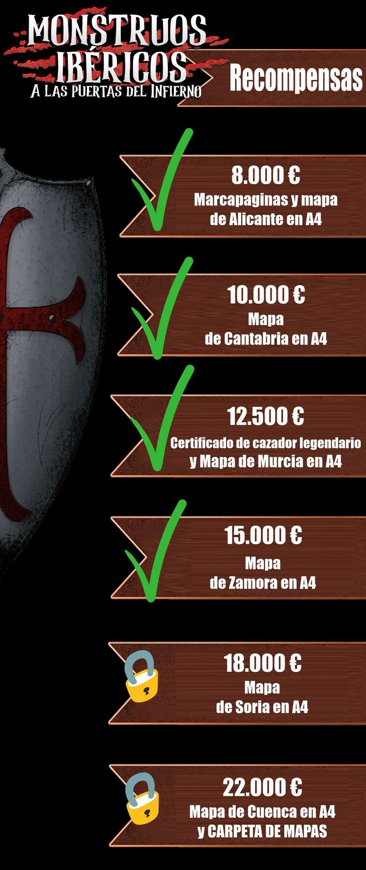 A parte de las recompensas que se pueden elegir y precomprar en el proyecto, creemos totalmente en las recompensas de objetivos. A medida que se vayan uniendo personas a Monstruos Ibéricos 3: a las puertas del Infierno, se irán desbloqueando estas recompensas para todos los mecenas.