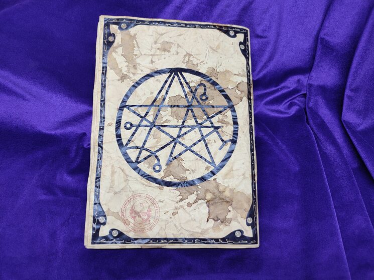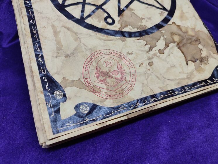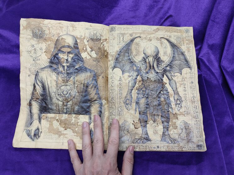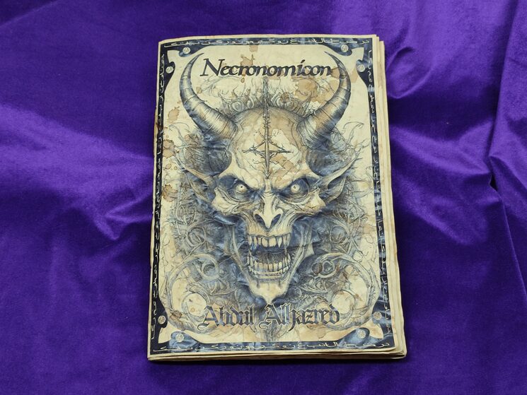 Un necronomicon encuadernado artesanalmente, nunca visto. Incluyendo Figuras y artefactos de los mitos de Cthulhu.
