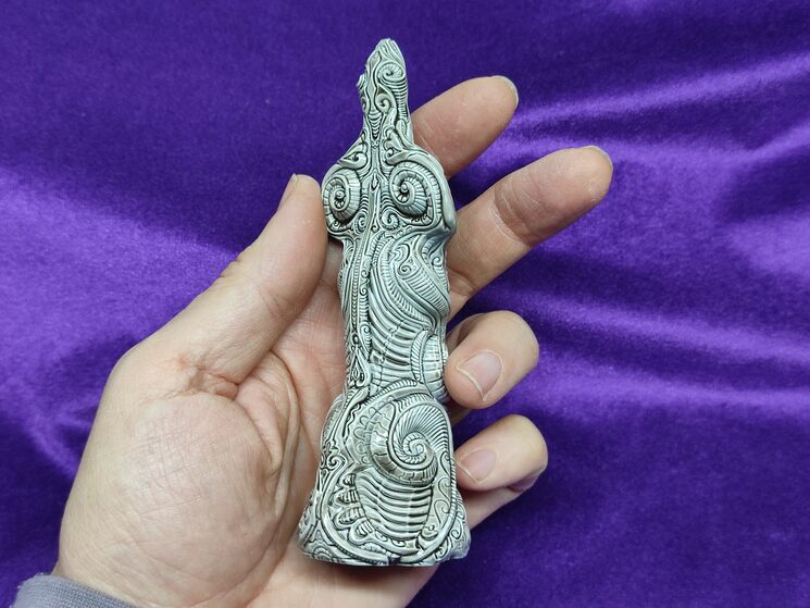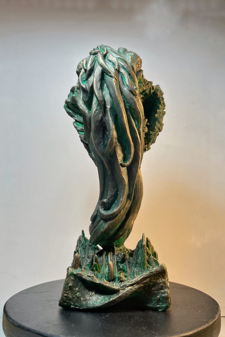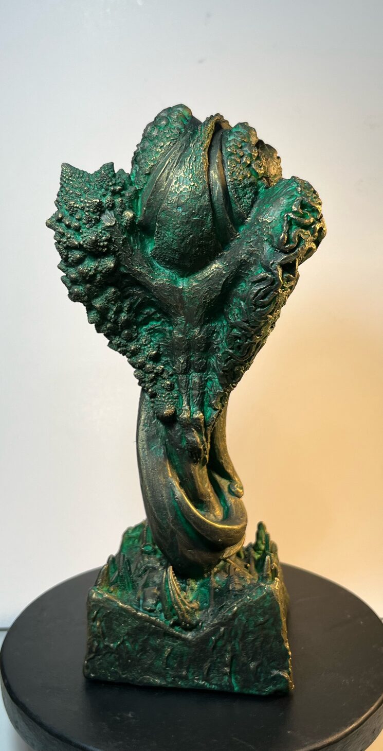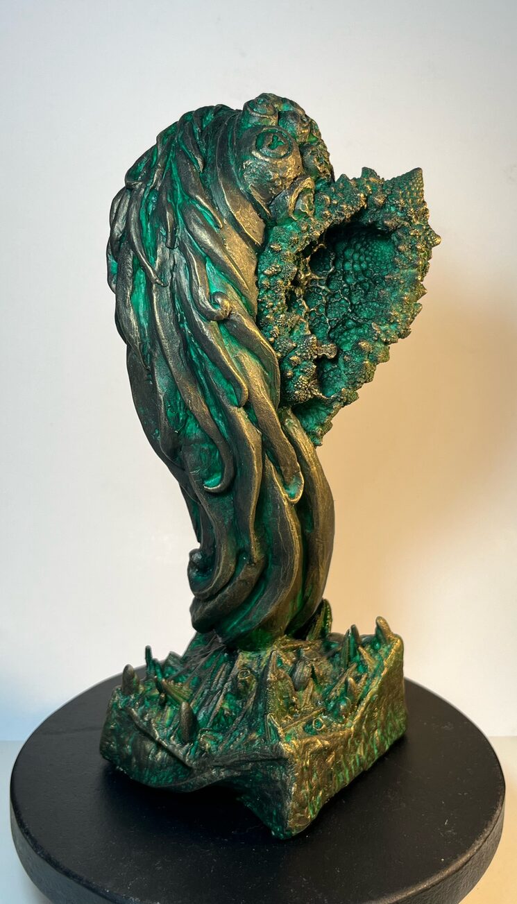 • Busto de cthulhu no euclidiano tamaño escritorio. Copia mas pequeña realizada mediante escaneo digital e impresión 3D con resina de alta calidad. El horror cósmico y geométrico, en la palma de tu mano. Acompañada de certificado de autencidad.