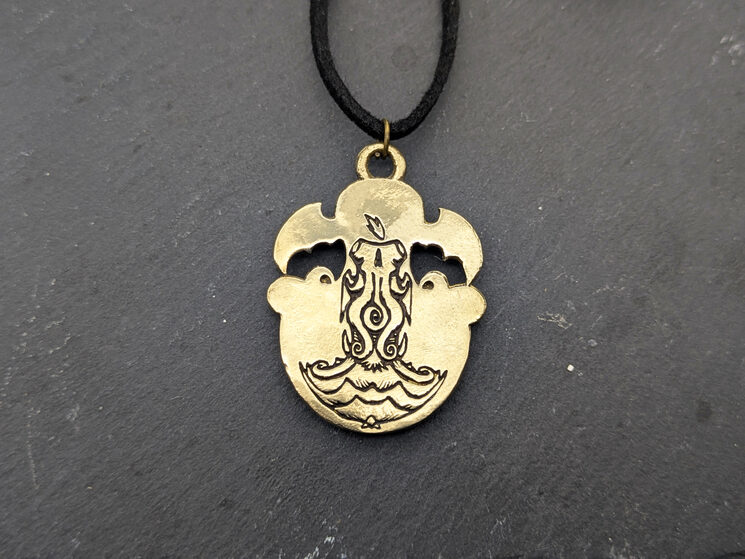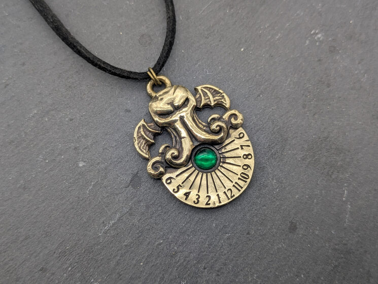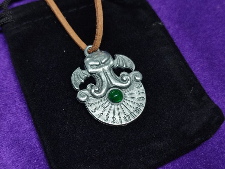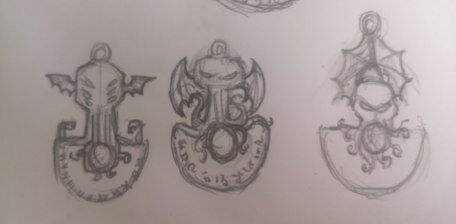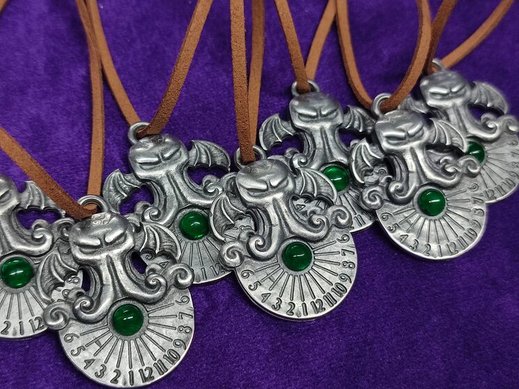 El crowdfunding va muy bien y queremos recompensar a los mecenas que han comprado o que compren el artículo "Codex Necronomicón" de 49 euros con un amuleto de cthulhu como el de la foto. Si llegamos a 15.000 euros os llegará de REGALO por haber comprado un "Codex Necronomicón"
