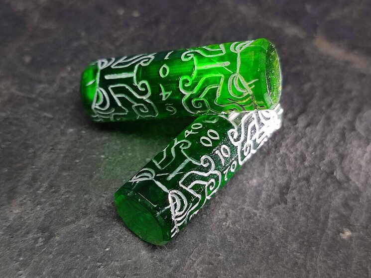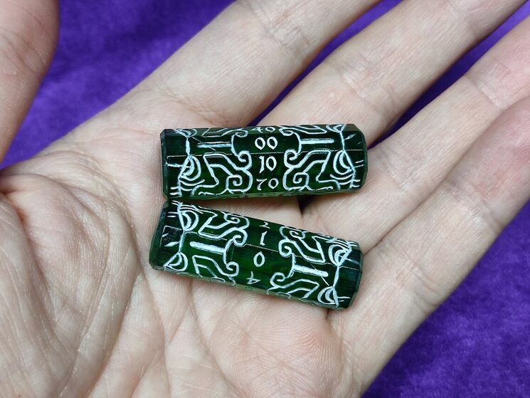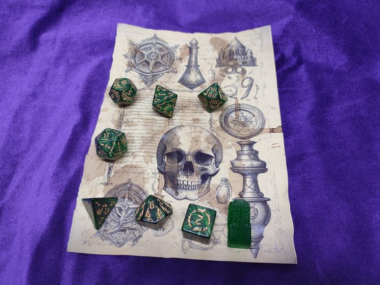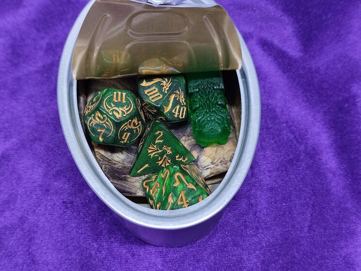 Estos dados exclusivos, ya que solo los fabricamos nosotros, son pintados a mano uno a uno y son fantásticos para rolear a "La llamada de Cthulhu"
