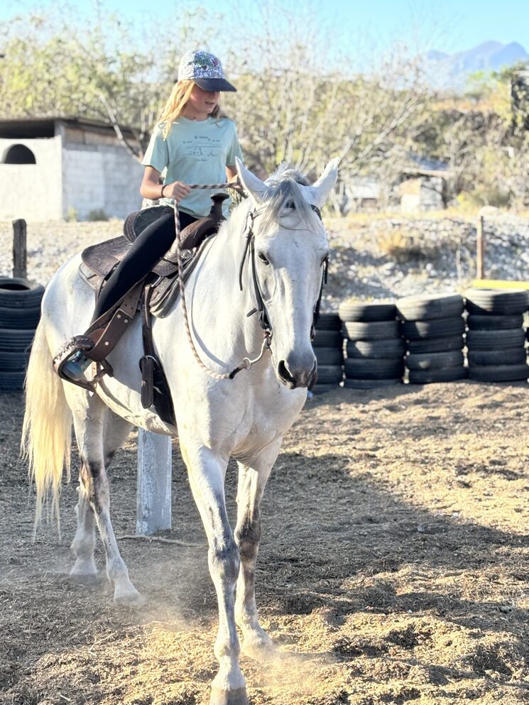 El viatge també s’ha convertit en la seva millor escola. A poc a poc ha anat aprenent moltes coses noves: ara ja parla anglès amb força fluïdesa, ha après a fer surf, bodyboard, anar amb caiac, fer esnòrquel i també a navegar a vela. Fins i tot ha tingut l’oportunitat de conduir una llanxa. A Mèxic també ha après a llançar el trompo —com anomenen aquí la baldufa— i, finalment, una cosa que li feia moltíssima il·lusió: muntar a cavall.