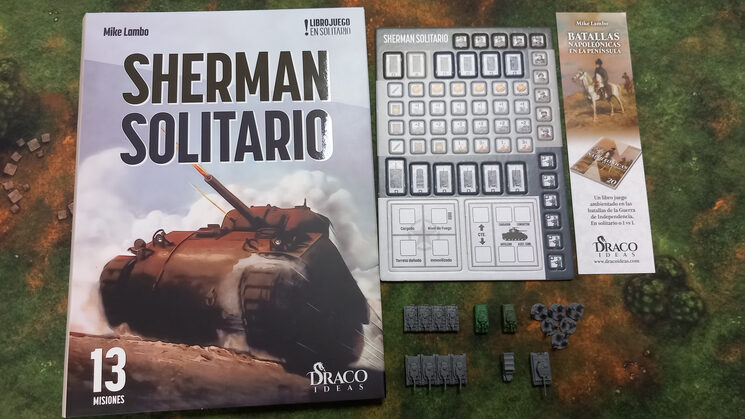 Bienvenidos a Sherman Solitario. Un libro-juego para jugar en solitario, ambientado en la Segunda Guerra Mundial y en el que gestionas a la tripulación de un tanque Sherman por las diferentes misiones.