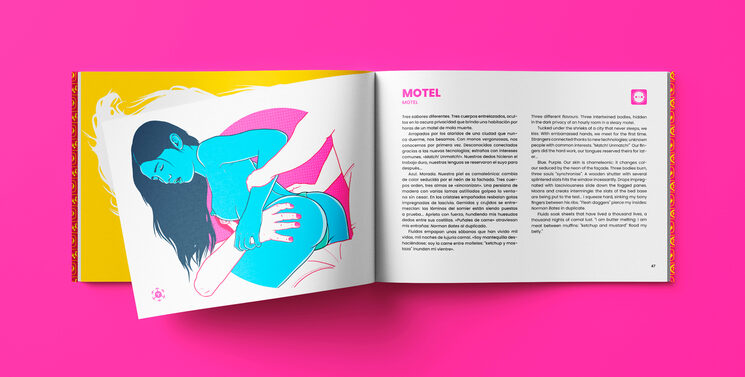 Además de los relatos, el libro incluye varias páginas dobles con citas de autores famosos relacionadas con el sexo.