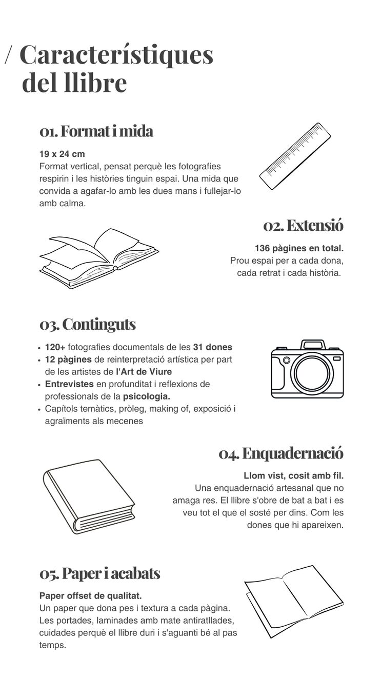 Aquest llibre està pensat perquè les històries de totes les dones que hi apareixen tinguin l'espai i la dignitat que es mereixen. Format vertical, imatges en gran, paper de qualitat que dona pes i textura a cada pàgina.