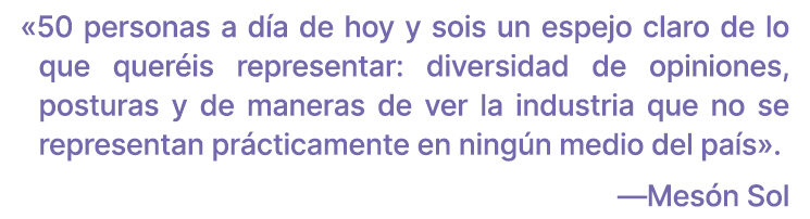 Hemos podido mantener unas condiciones dignas para nuestros colaboradores, con algunas de las mejores tarifas del periodismo especializado en videojuegos. Otro año más, mantenemos el precio de nuestras ediciones físicas y digitales así como nuestra máxima: ni un gramo de publicidad en nuestras páginas. Queremos seguir manteniendo nuestro espíritu independiente, y las nuevas líneas de libros que presentaremos durante este año quieren dar cobijo a nuevas firmas, mejores condiciones y nuevas formas de entender este enfoque para con los videojuegos.