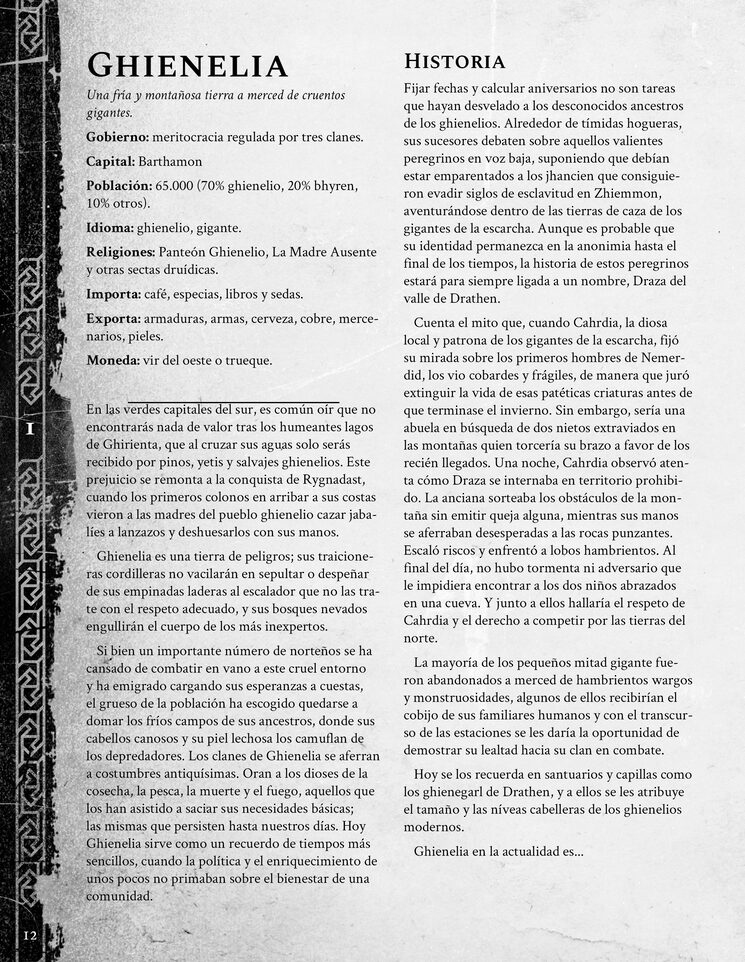 ¿Te crees preparado para liberar otros de los colosales dragones de Dabn? ¿Tendrás el coraje de investigar los fríos bosques ghienelios y mirar a los ojos a las crueles sagas que conspiran en su interior? ¿O acaso serás una víctima más de su propia avaricia y conocerás tu final bajo una tormenta de arena, siguiendo un rastro de pisadas fuera de las malditas capitales de Zhiemmon? Todo esto y más en Nemerdid, un escenario de campaña para D&D.