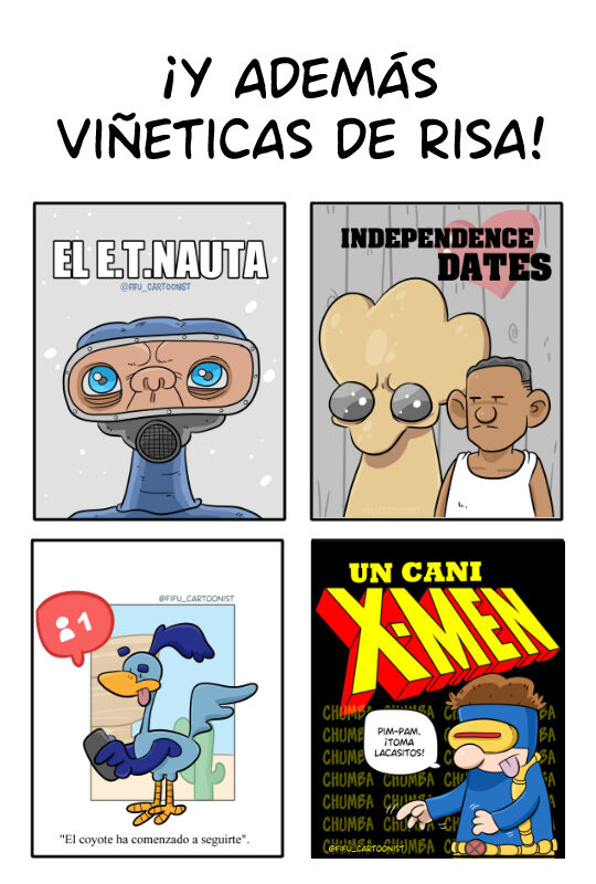 Soy humorista gráfico y hago coñas con el cine, series, cómics y la cultura pop en general. Lo que viene a ser frikadas dicho en moderno.