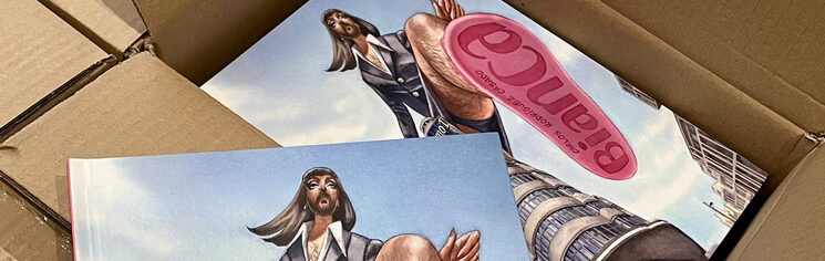 Bianca es mi primera novela gráfica, un proyecto que empezó en 2020 y fue beneficiario de una de las subvenciones a la creación literaria del Ministerio de Cultura en el año 2022. Tras años buscando acomodo editorial sin éxito, por fin sale en preventa a través de esta campaña de Verkami.