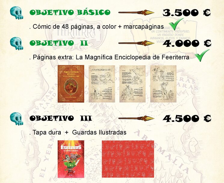 Te proponemos que formes parte de esta aventura, cuantos más mecenas seamos, mejor versión del cómic te llevas, e iremos sumando regalos para todos/as según se vayan consiguiendo los objetivos que detallamos en el siguiente cuadro (tapa dura, guardas, print e ilustraciones, ArtBook,…).