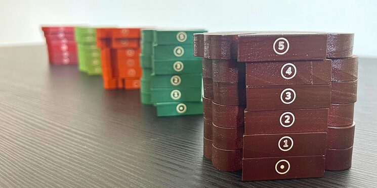 El tablero esta constituido por losetas o círculos individuales (“tierras”), cada uno con un valor numérico, empezando con la de menos valor que es la del 2.