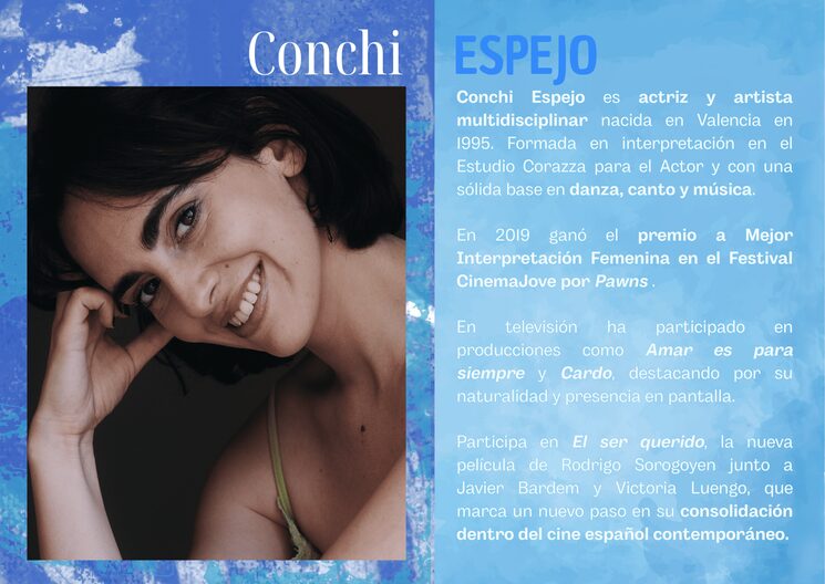 Productora: María Pasadas Martín es una cineasta andaluza que combina sensibilidad y mirada social en cada proyecto. Desde su enfoque intimista y comprometido, dirige y escribe historias que exploran la identidad, las emociones y los vínculos humanos con una estética cercana y poética. Su trabajo audiovisual, como la webserie De3en3, refleja una apuesta por visibilizar realidades diversas (especialmente las de las mujeres y el colectivo LGTBI+), fusionando arte y conciencia para generar diálogo y cambio social.