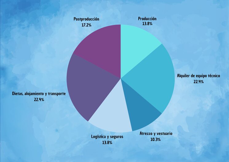 Producción (13,8%): Gastos de gestión, permisos de rodaje, alquileres logísticos y coordinación de todo el proceso.