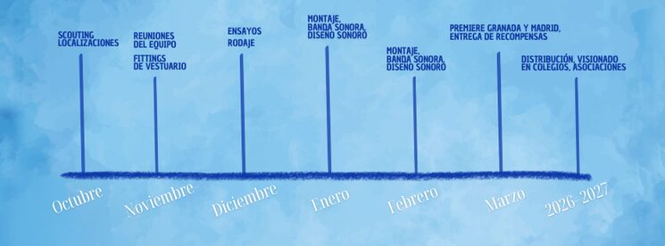 Hay un trabajo que lleva desde enero funcionando. La escritura del guión, la confirmación de intentar levantarlo, buscar financiación, contactar con el equipo artístico, contactar con el equipo técnico, gestionar fechas, gestionar las localizaciones, desarrollar dossieres, cambios de guión, preparar el crowdfunding...