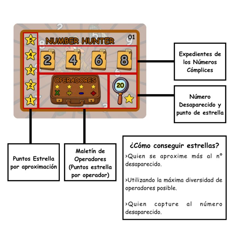 Como agentes Number Hunters deberéis capturar a los números rebeldes desaparecidos, no os preocupéis contaréis con números cómplices de su desaparición y con poderosas herramientas de investigación, los operadores (x,÷,+ y -) podréis hacerles confesar.