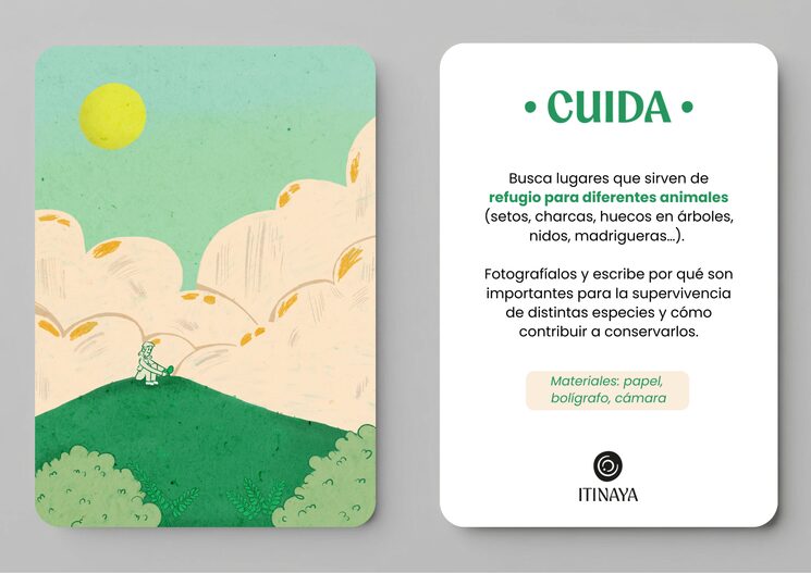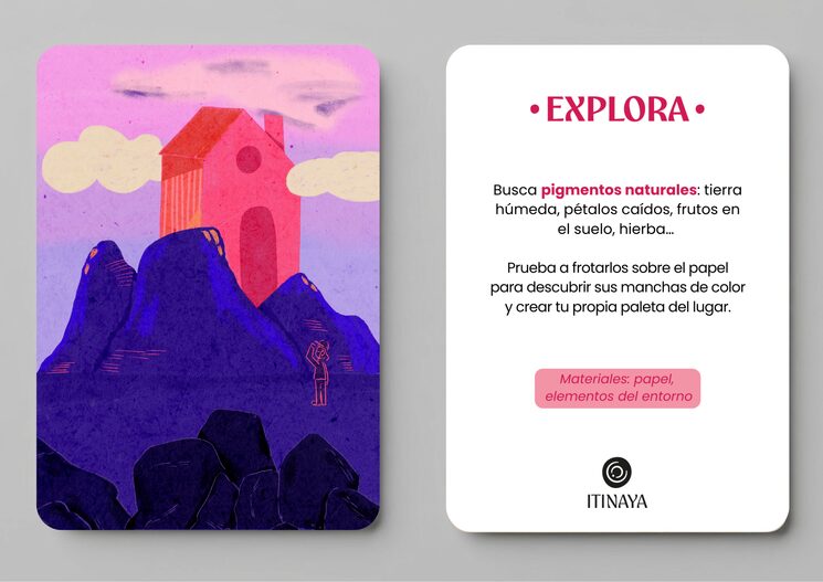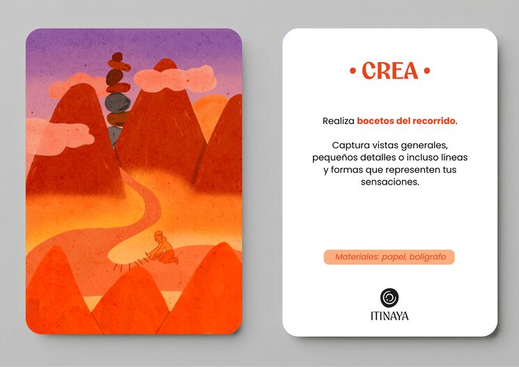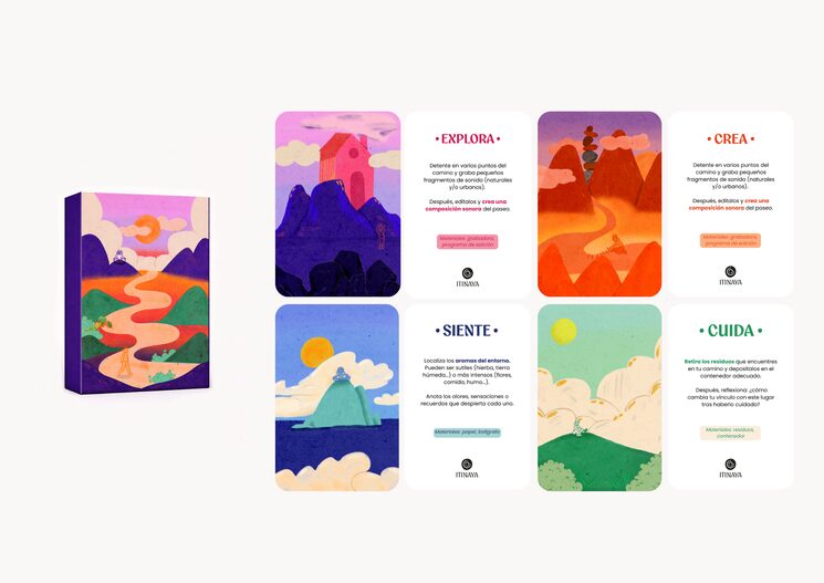 ITINAYA es un juego de cartas para caminar. No es un juego de mesa tradicional, sino una propuesta lúdica que convierte cada paseo en una experiencia creativa, consciente y sostenible.