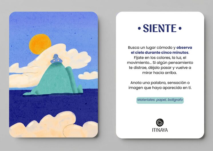 ITINAYA es un juego con múltiples opciones, que podrás adaptar según tu tiempo y energía. No hay partidas, no hay ganadores ni reglas rígidas. Solo el camino y una invitación a observar, sentir y crear.