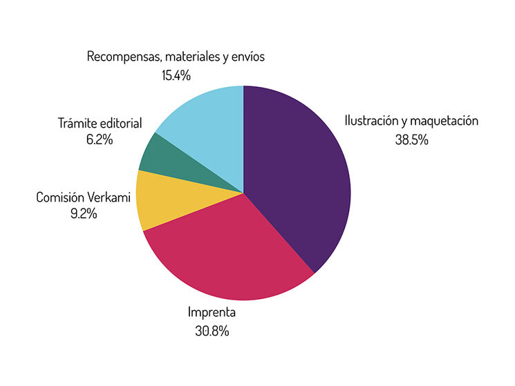 Como se muestra en el gráfico, vuestras aportaciones son principalmente para cubrir los gastos de ilustración e imprenta.
