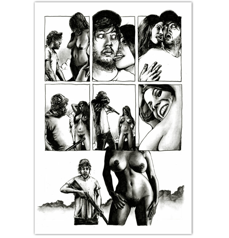 (Las ilustraciones y páginas que aquí se muestran no son definitivas y pueden variar del material publicado finalmente en el cómic. El contenido de este cómic puede herir la sensibilidad de algunas personas ya que incluye escenas de violencia explícita y desnudos).