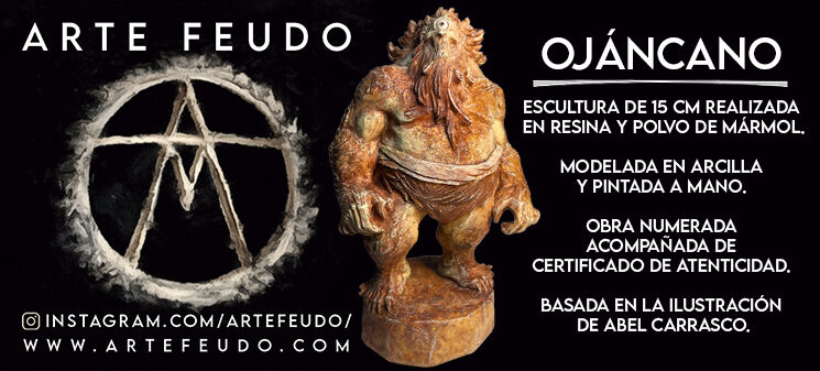 Damos la opción de que el mecenas pueda llevarse una espectacular figura de 15 cm, realizada en resina y polvo de mármol, pintada a mano, por ARTE FEUDO del Ojáncano. Esta recompensa es una segunda edición numerada y se entrega en su caja individual con un certificado de autenticidad.