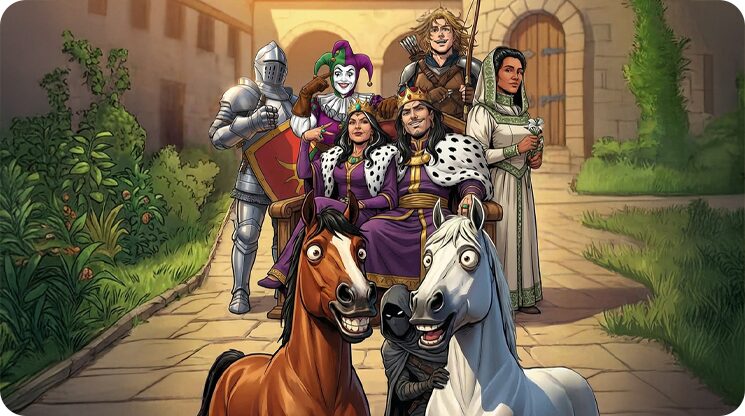 Además de la edición estándar en castellano, también puedes conseguir las versiones del juego en catalán (edición Corona de Aragón) y en inglés (edición estándar). Estas otras ediciones se juegan exactamente igual; la única diferencia es que los diseños de los personajes de la edición en catalán están inspirados en la Corona de Aragón, y todos los contenidos, tanto cartas como manual, están en el idioma elegido. Selecciona el idioma catalán o inglés en Verkami para ver con más detalle dichas ediciones.