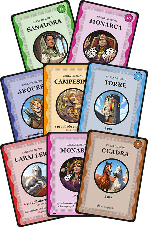 El objetivo del juego es forjar la mejor combinación de Cartas de Reino en tu zona de juego para sumar el máximo de puntos. Las Cartas de Reino se pueden colocar libremente, de forma individual o apiladas con otras para obtener su puntuación óptima según las reglas de apilamiento (Campesinos sobre Campos, Arqueros sobre Torres, Caballeros sobre Cuadras).