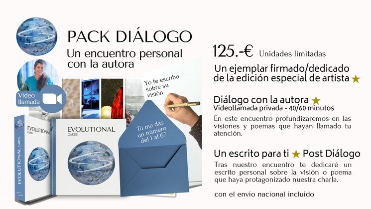 Para los mecenas del Pack Diálogo: Una vez que tengas la obra en tus manos, contactaré contigo para agendar nuestra videollamada. Mi previsión es realizar todos los encuentros en el plazo de un mes tras la recepción de vuestros envíos.