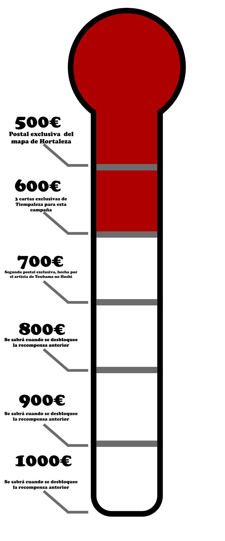 Todas las recompensas adicionales se desbloquearán para todos los mecenas que pidan cualquier recompensa física. Cada recompensa se desbloqueará en cada intervalo de 100€ de recaudación de esta campaña por encima de la meta.