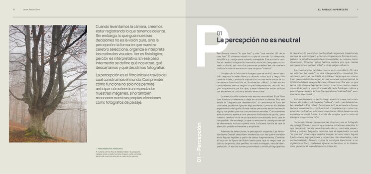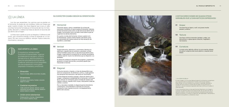 El paisaje imperfecto. Composición e impacto visual es una obra de ensayo teórico-práctico centrada en el análisis del lenguaje visual aplicado a la fotografía de paisaje.