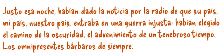 • Una novela sobre el hartazgo acumulado, originado por los omnipresentes bárbaros, que podemos sentir cada uno de nosotros.