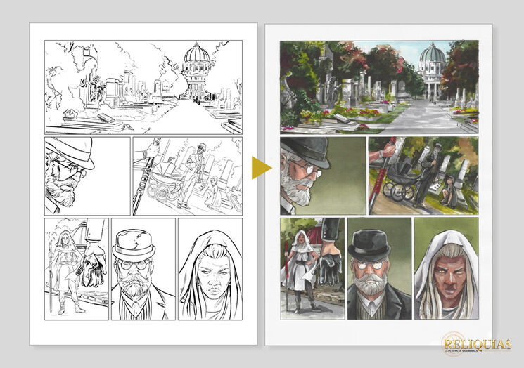 Páginas adicionales con procesos de trabajo (40.000€): Agregaremos páginas extra que revelarán los procesos creativos detrás de la historia.